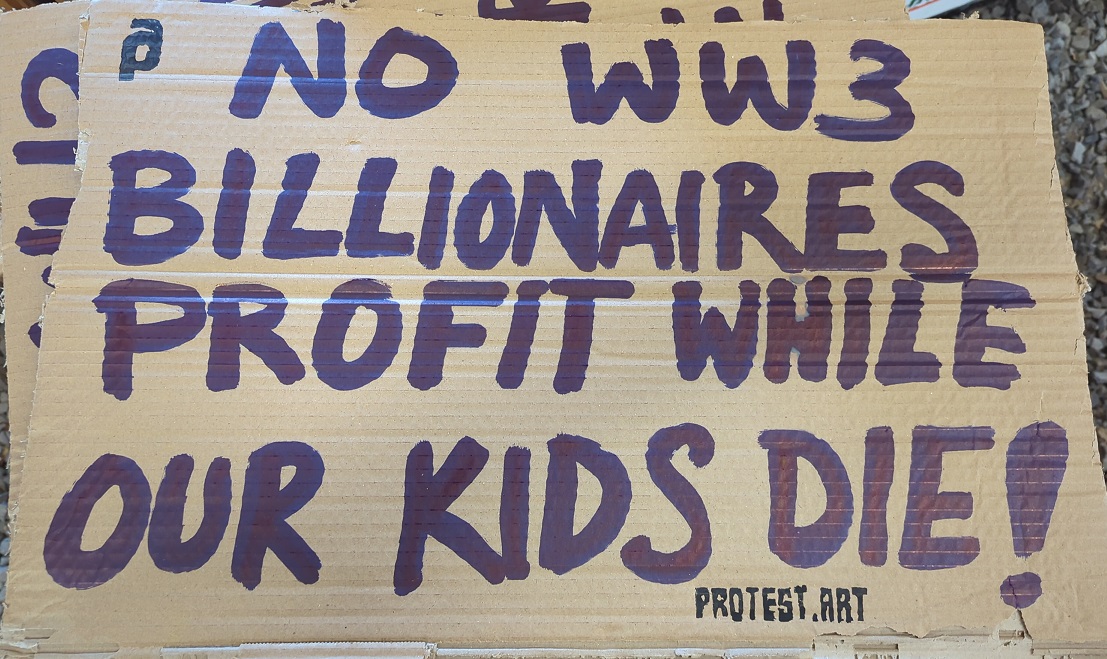 NO WW3 BILLIONAIRES PROFIT WHILE OUR KIDS DIE!