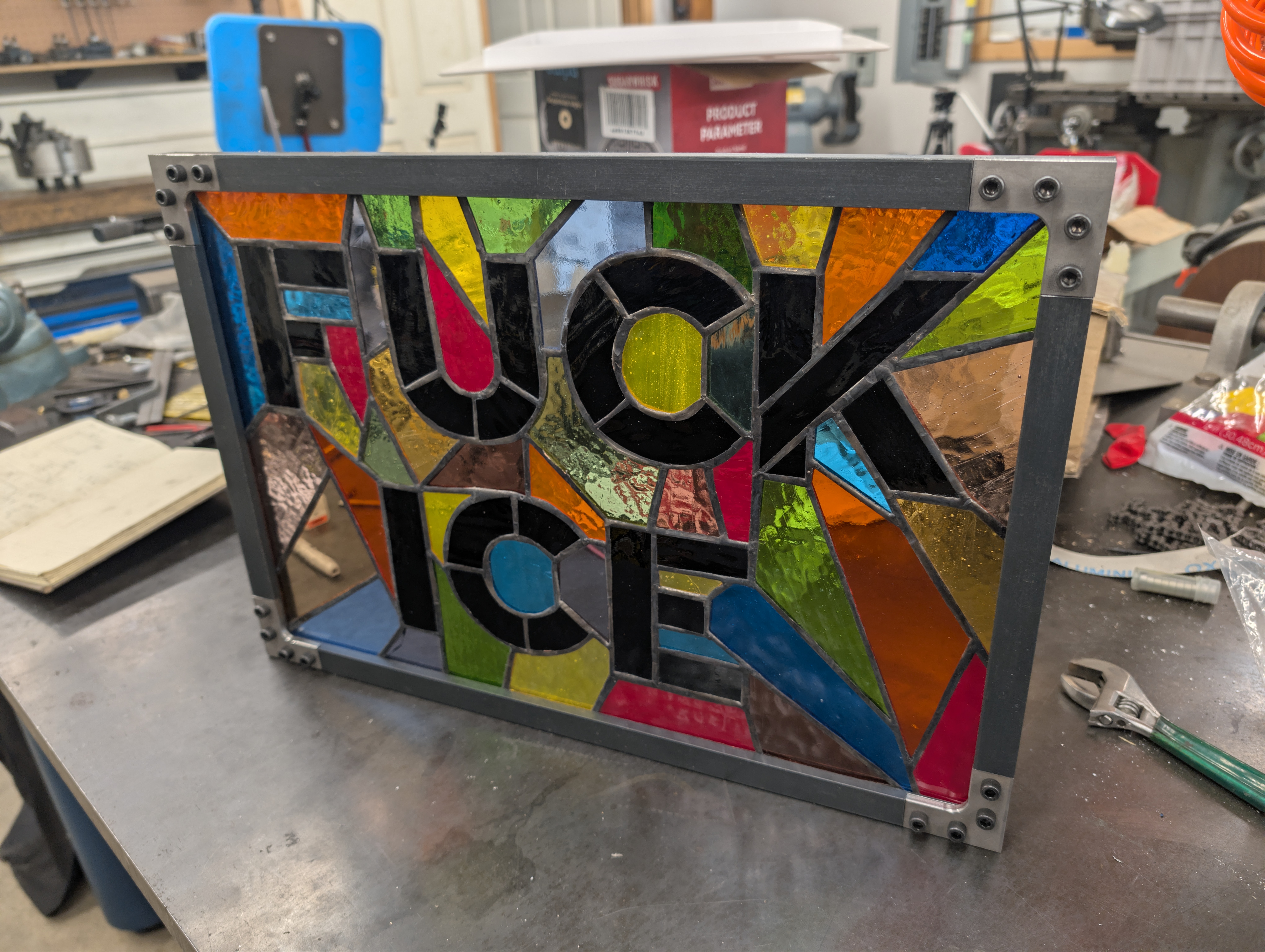 Matthew Dockrey - FUCK ICE Sign Custom Metal Frame - Stained Glass and Metal - March 2026